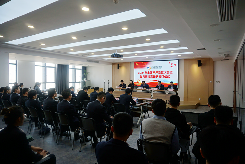 為全面落實(shí)從嚴(yán)治黨要求,深入推進(jìn)黨風(fēng)廉政建設(shè),為集團(tuán)高質(zhì)量發(fā)展提供堅(jiān)實(shí)的政治保障,3月12日下午,煙臺(tái)財(cái)金集團(tuán)組織全體干部職工召開2021年全面從嚴(yán)治黨大會(huì)暨黨風(fēng)廉潔責(zé)任狀簽訂儀式。會(huì)議由集團(tuán)黨支部副書記、總經(jīng)理李輝主持。會(huì)上,集團(tuán)黨支部書記、董事長劉海彬?qū)θ媛鋵?shí)從嚴(yán)治黨工作提出四點(diǎn)要求:一是強(qiáng)化...