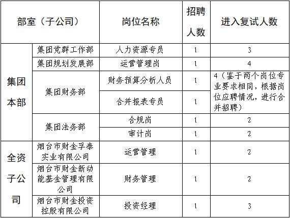 按照《2020年煙臺財金集團(tuán)面向“雙一流”和全球TOP200高校畢業(yè)生公開招聘簡章》工作安排,公司分別于9月9日、9月18日組織了兩個批次的初試,根據(jù)初試總體情況,經(jīng)研究決定,擬對部分崗位組織復(fù)試,現(xiàn)將有關(guān)事項公告如下: