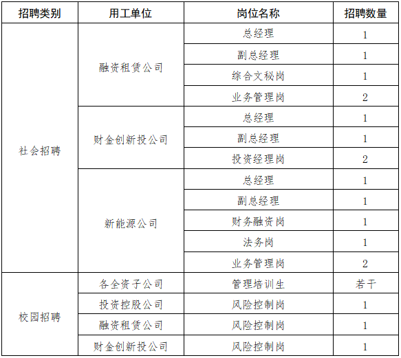 按照集團(tuán)實(shí)際用工需要,決定通過校園招聘和社會招聘,公開招聘各崗位人才數(shù)名,具體事項(xiàng)公告如下: