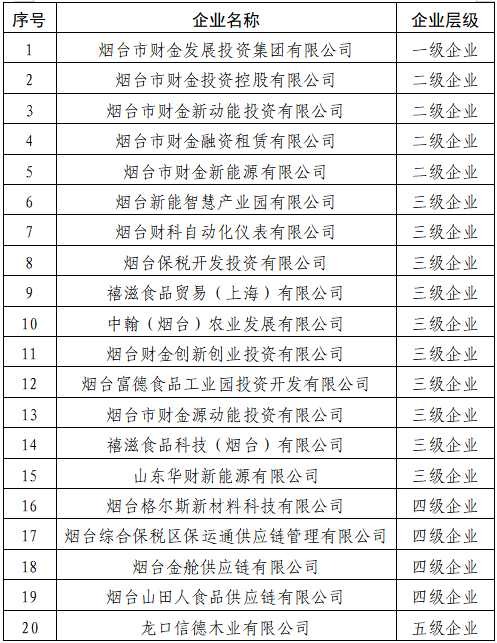 按照國(guó)家、省、市關(guān)于《綜合整治假國(guó)企央企行動(dòng)方案》的相關(guān)要求,現(xiàn)將煙臺(tái)財(cái)金集團(tuán)投資并表范圍內(nèi)國(guó)企名單(共計(jì)20戶)予以公布,具體如下: